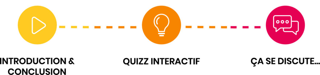 Nos ateliers sont 100% digitaux et interactifs, animés via Microsoft Teams. Ils durent 30 ou 60 minutes et combinent vidéos, quiz interactif (Kahoot) et échanges en sous-groupes (pour le format 60 min). À l’issue de chaque session, un reporting personnalisé est fourni à l’entreprise.