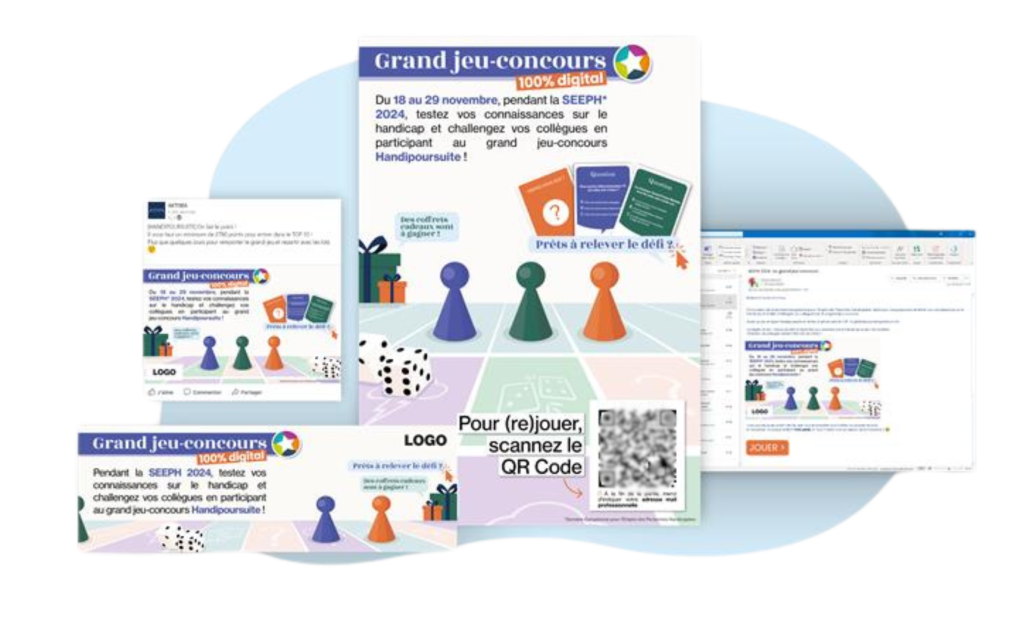 Nous vous fournissons un kit de communication complet pour mobiliser vos Ă©quipes : affiches (jusquâĂ 100 imprimĂ©es incluses), banniĂšres, modĂšles dâe-mails, publications, rĂ©seaux sociaux, articles internes et planning de diffusion.